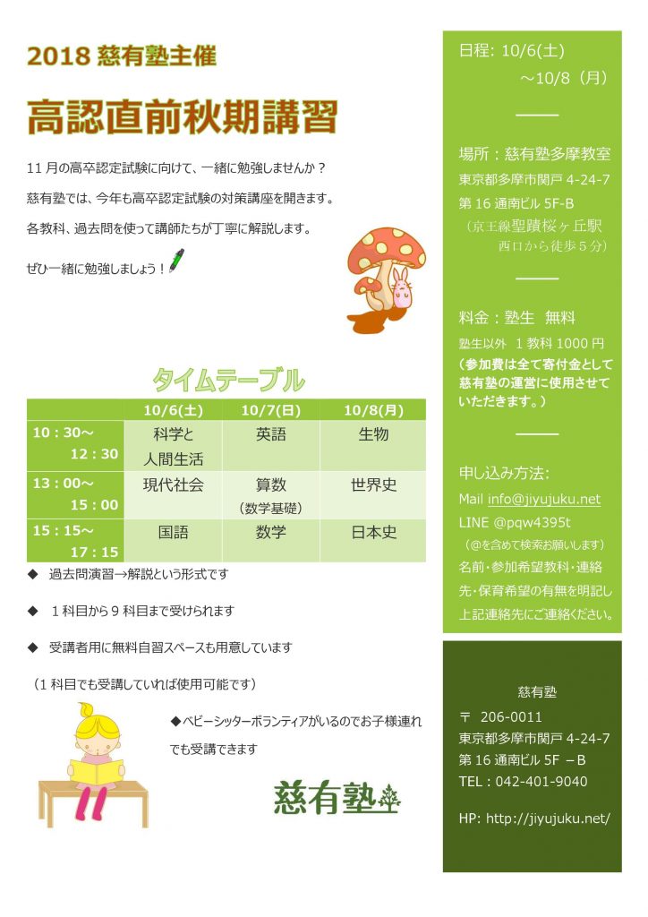 高認試験対策 直前秋期講習を開催します!